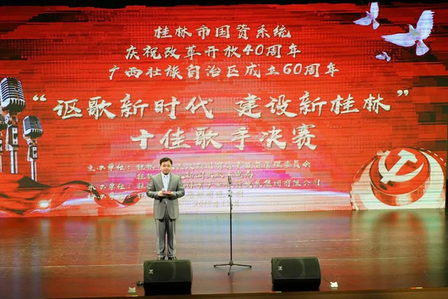 本次比賽旨在慶祝中華人民共和國成立69 周年、廣西壯族自治區(qū)成立60 周年,禮贊黨的十九大描繪的新時代宏偉藍圖。豐富國資系統(tǒng)干部職工的業(yè)余文化生活,謳歌國資系統(tǒng)干部職工圓夢新時代、建功新時代的豪情壯志,增強國資系統(tǒng)干部職工投身桂林國際旅游勝地建設的緊迫感、責任感和使命感。