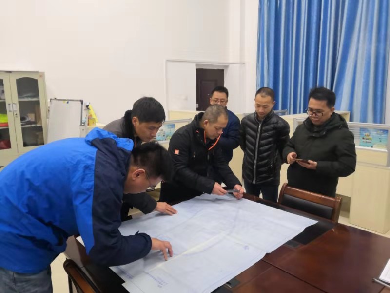 圖為新城投資集團黨支部書記、總經(jīng)理周道林在醫(yī)學院調(diào)取排水管線圖紙做排澇預(yù)案