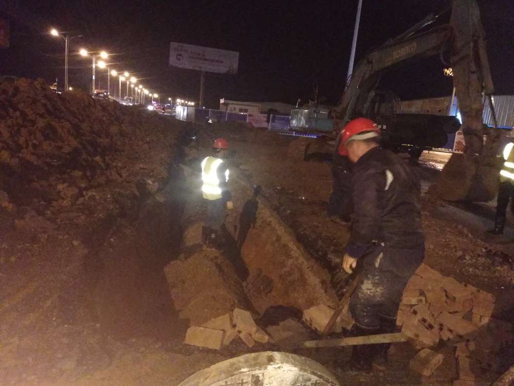 在李星明的指導(dǎo)下,周道林立即組織制定排澇方案,在致遠路與西城大道交叉口北側(cè)找到排往水系的雨水井,迅速安排有關(guān)部門召集管線單位到現(xiàn)場確認開挖范圍內(nèi)是否有管線,快速完成管線協(xié)調(diào)后,集團公司連夜組織施工單位,落實排澇方案。經(jīng)過一個晚上通宵達旦連續(xù)搶工,修建出一條長50米、寬1.8米、深1.6米的排水溝槽,連通排洪渠和雨水管道,成功疏泄積水,次日清晨完成了搶險任務(wù)。桂林醫(yī)學院及致遠路北段內(nèi)澇解決了,價值上千萬的儀器設(shè)備也得以確保安全,學校教學井然有序。