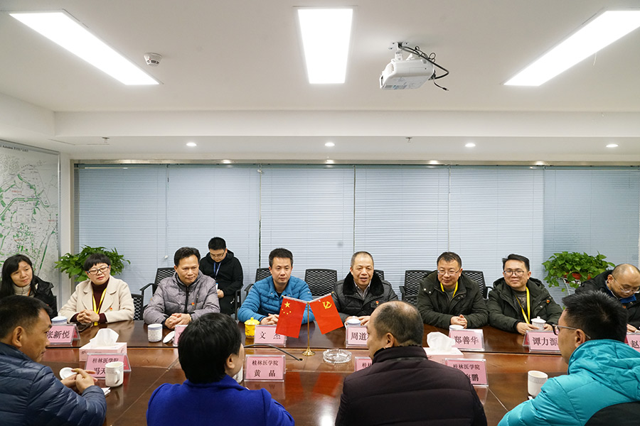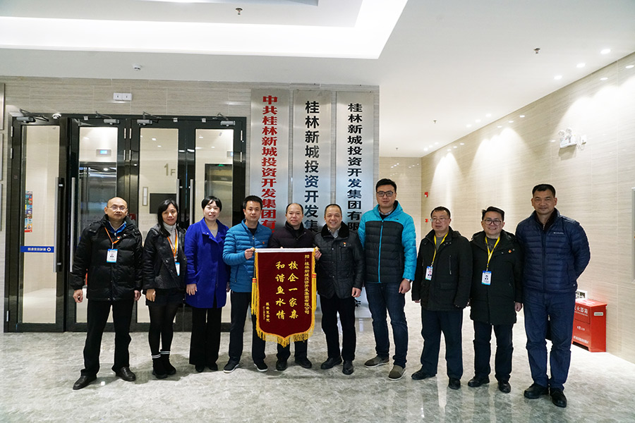 圖為桂林醫(yī)學院院長助理覃克強一行向新城投資集團贈送錦旗