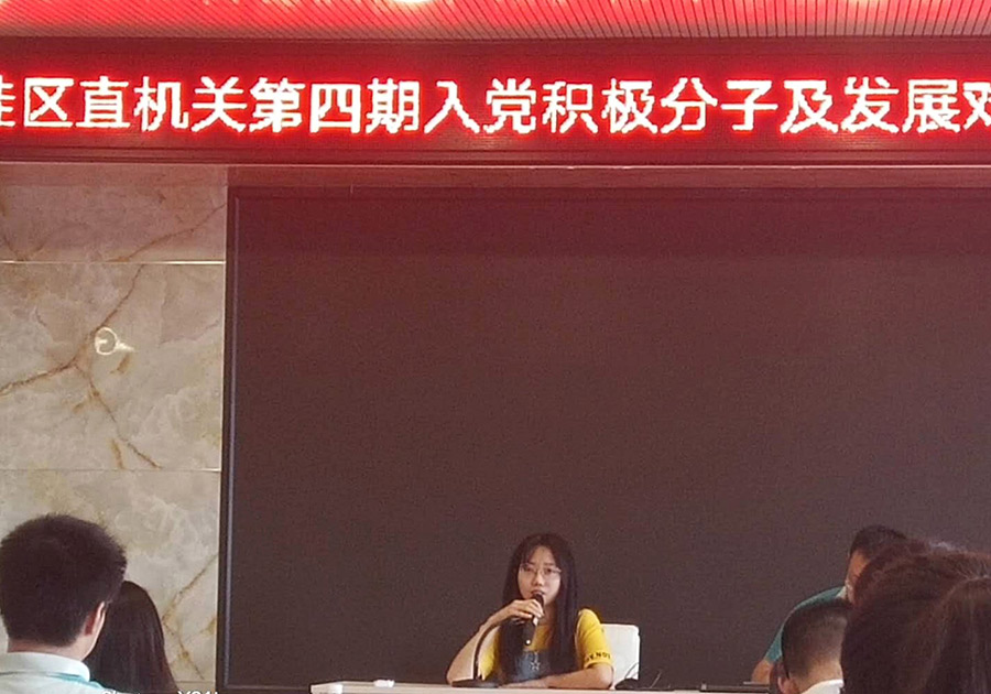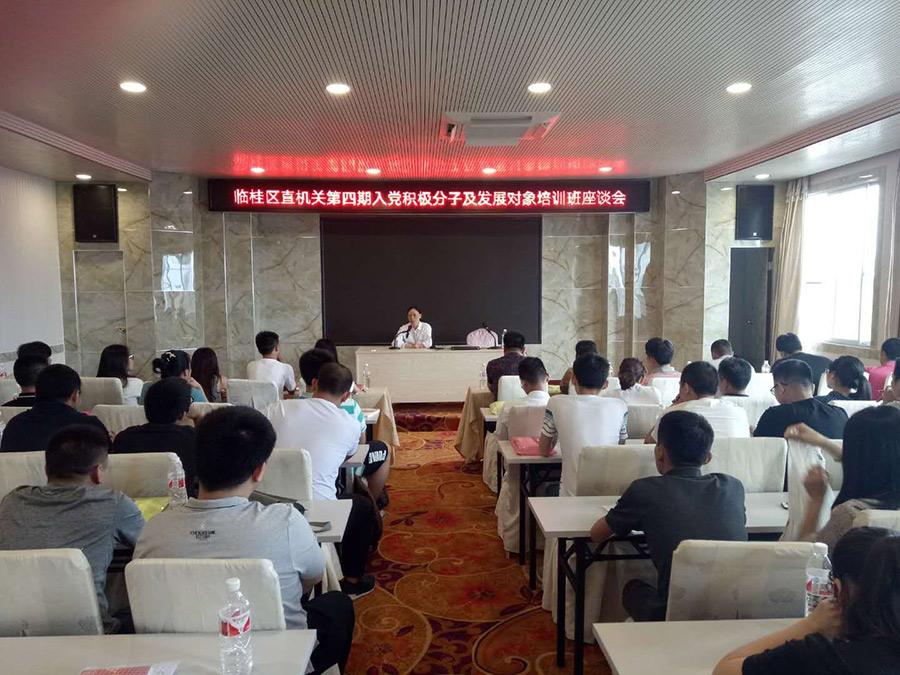 2018年5月28日至5月31日臨桂區(qū)直屬機(jī)關(guān)工委舉辦桂林市臨桂區(qū)直機(jī)關(guān)第四期入黨積極分子及發(fā)展對(duì)象培訓(xùn)班,旨在進(jìn)一步加強(qiáng)對(duì)入黨積極分子的培養(yǎng)、教育和考察,提高入黨積極分子和發(fā)展對(duì)象的思想政治素質(zhì)。新城投資集團(tuán)共計(jì)八位員工參加此次培訓(xùn),分別是秦輝、韋丹陽(yáng)、段靜、梁慧穎、尹于、張文婷、秦建華、秦年息。
