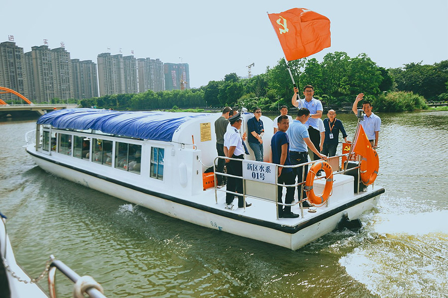 參加主題活動的86名黨員分別乘坐“黨員先鋒號”游船游覽了臨桂新區(qū)環(huán)城水系核心區(qū)景觀工程。在水一坊碼頭下船后徒步至狀元橋,在橋頭草地上,活動組邀請曾擔任臨桂縣委副書記、臨桂縣人大主任、參加過對越自衛(wèi)反擊戰(zhàn)、50年黨齡、今年68歲的退休老黨員蔣源球同志給參加活動的黨員現(xiàn)場上黨課。黨員同志們認真聆聽,與蔣老一起追憶自衛(wèi)反擊戰(zhàn)的先輩們歷經(jīng)的千難萬險和艱苦歲月,大家被革命先烈們?yōu)楸Pl(wèi)國家領土而英勇奮戰(zhàn)、不怕犧牲的精神所震撼和激勵,大家紛紛表示要在今后的工作和生活中積極傳承和發(fā)揚老一輩革命戰(zhàn)士的優(yōu)良傳統(tǒng),以十九大精神為指引,為早日建好美麗新區(qū)而努力奮斗。