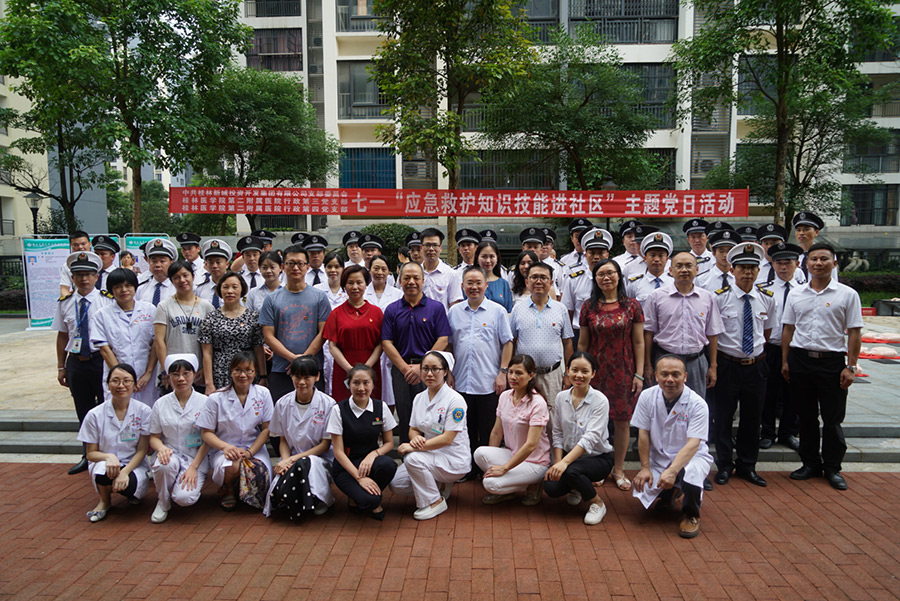為充分發(fā)揮黨員志愿者的先鋒模范帶頭作用,增強(qiáng)轄區(qū)居民對(duì)健康的關(guān)注,加強(qiáng)對(duì)夏季防病的健康意識(shí),6月29日(周六)上午,新城投資集團(tuán)黨支部和桂林醫(yī)學(xué)院第二附屬醫(yī)院行政第三、第四黨支部在桂林市臨桂區(qū)新城國(guó)奧小區(qū)舉行“應(yīng)急救護(hù)及健康知識(shí)進(jìn)社區(qū)”主題黨日活動(dòng)。