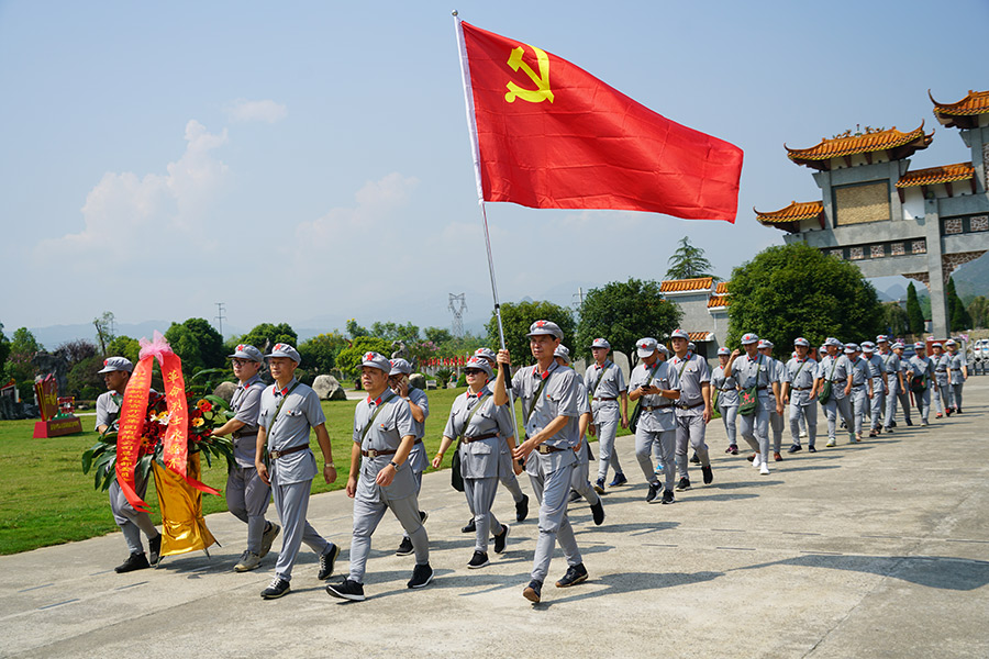 “一草一木一忠魂,一山一石一豐碑”。在興安縣紅軍長(zhǎng)征突破湘江烈士紀(jì)念碑前,周道林帶領(lǐng)全體黨員整齊列隊(duì)、敬獻(xiàn)花籃,行三鞠躬禮,表達(dá)對(duì)英烈們的哀思和悼念。在紅軍長(zhǎng)征突破第四道封鎖線指揮部舊址,黨員們深深感到在革命的艱苦歲月里,中國(guó)工農(nóng)紅軍將士們懷著對(duì)黨的無(wú)限忠誠(chéng)和革命必勝的信念。在界首渡江碼頭,大家駐足凝望湘江,沉浸在紅色的回憶里。