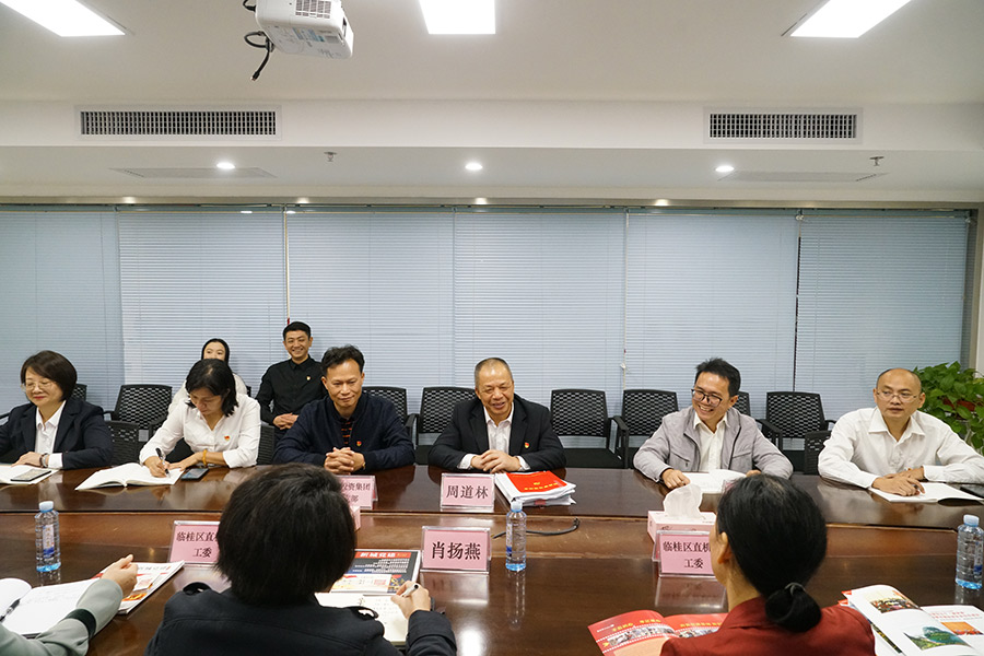 臨桂區(qū)直機(jī)關(guān)工委李梅、張斌、蒙建梅等陪同調(diào)研,集團(tuán)公司黨支部鄧仁友、張新悅、譚力源等參加上述活動。