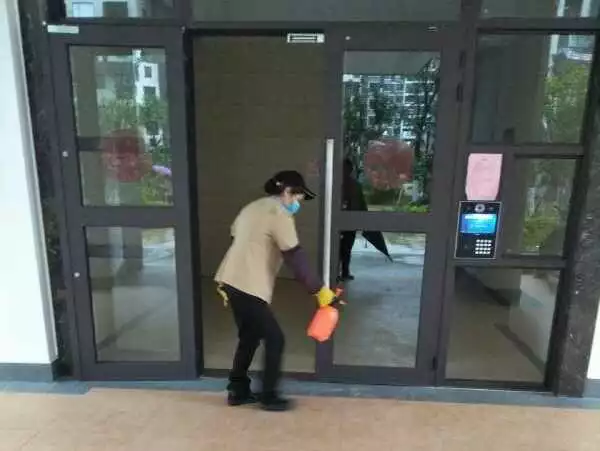 對所管項目的室內(nèi)場所實行全面消毒。對出入門禁、康體設施、地下車庫、電梯、垃圾中轉站等關鍵區(qū)位噴灑消毒水;使用醫(yī)用酒精、84消毒液等消毒劑擦拭兒童娛樂設施、公共通道的門把手、開關、按鍵等。針對人流密集的項目加大消毒頻次。