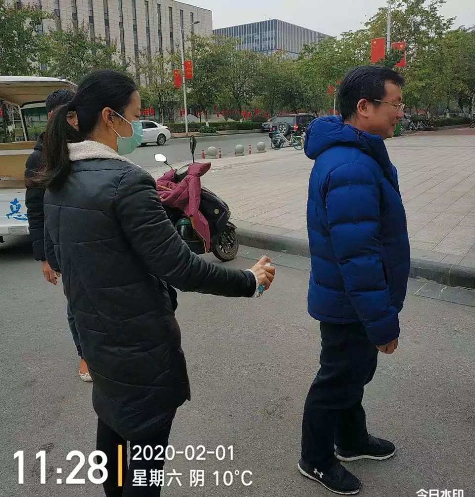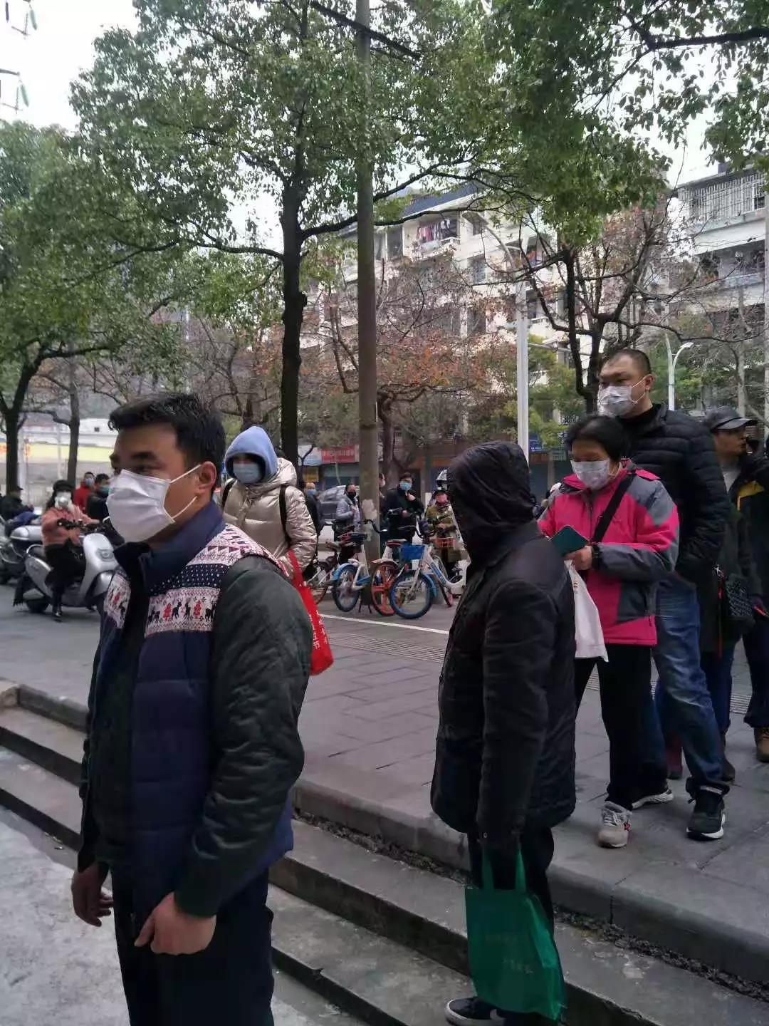 ▲冷冷的天氣,唐忠祥同志在各藥店和醫(yī)療器械機構(gòu)門口排隊采購物資。