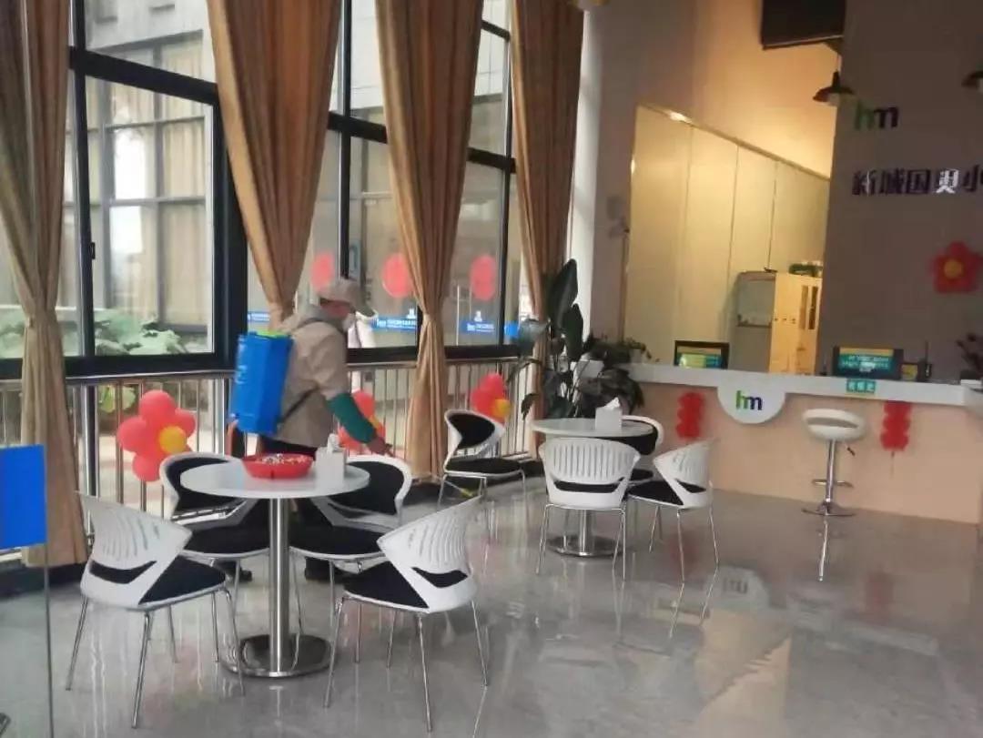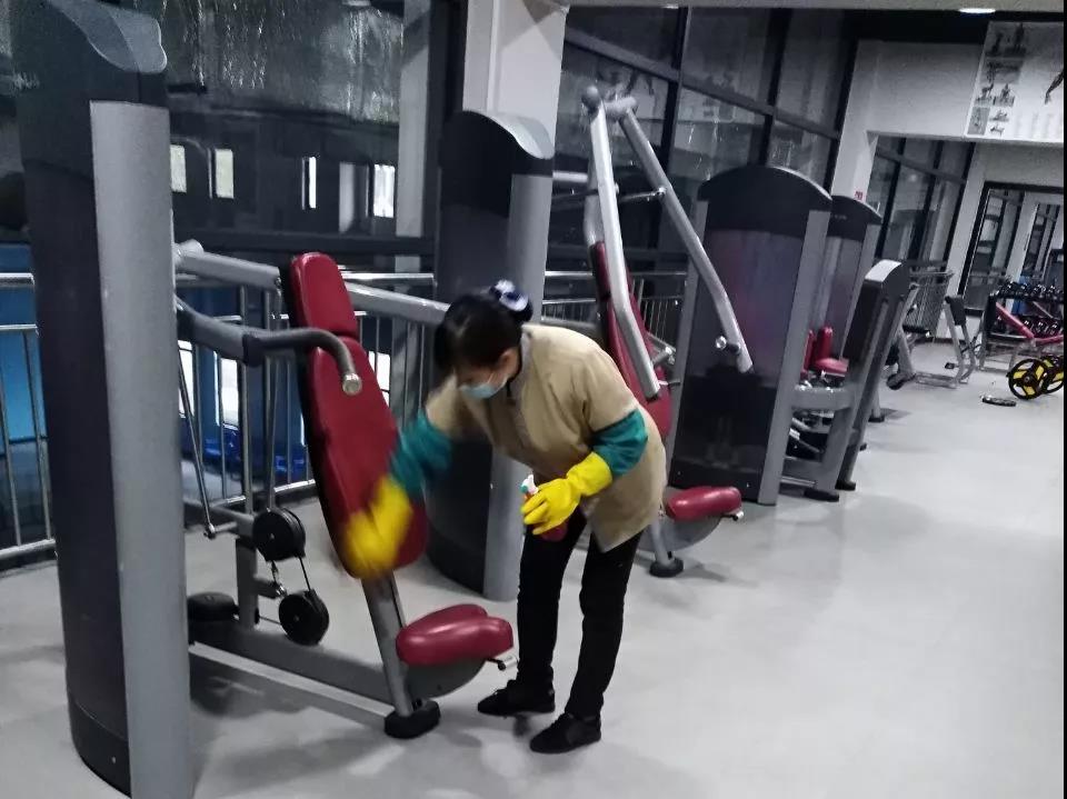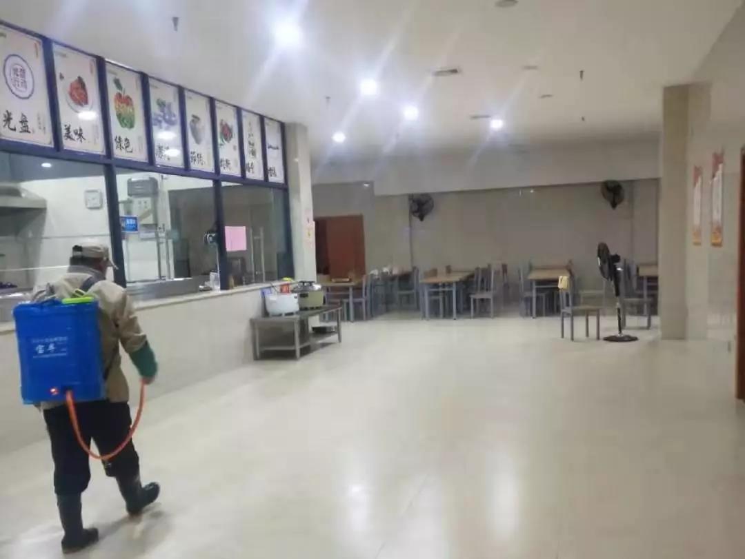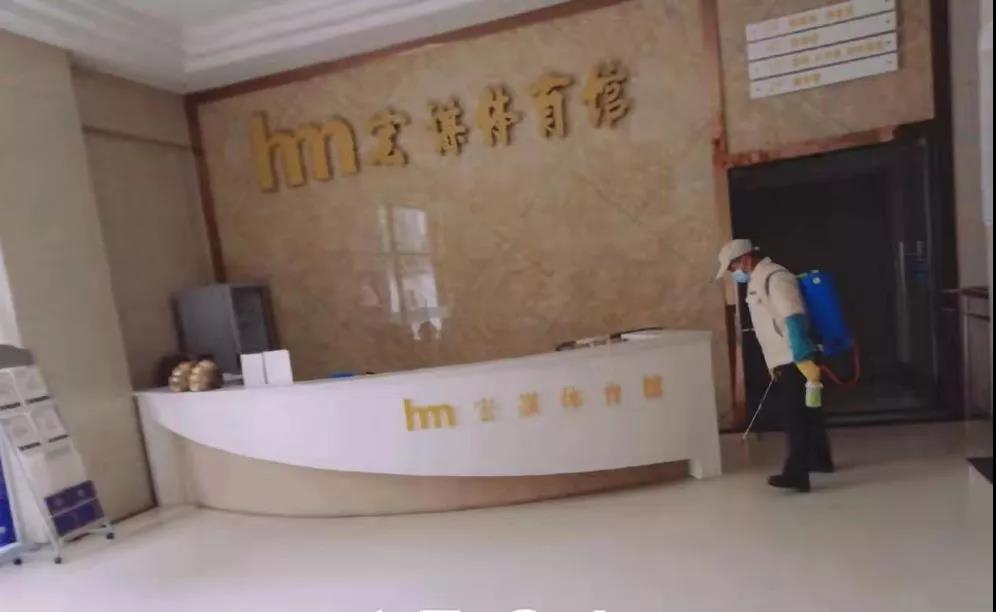 ▲保潔人員分別對物業(yè)中心、員工食堂、小區(qū)門崗、宏謀體育館等區(qū)位進(jìn)行全面消毒。