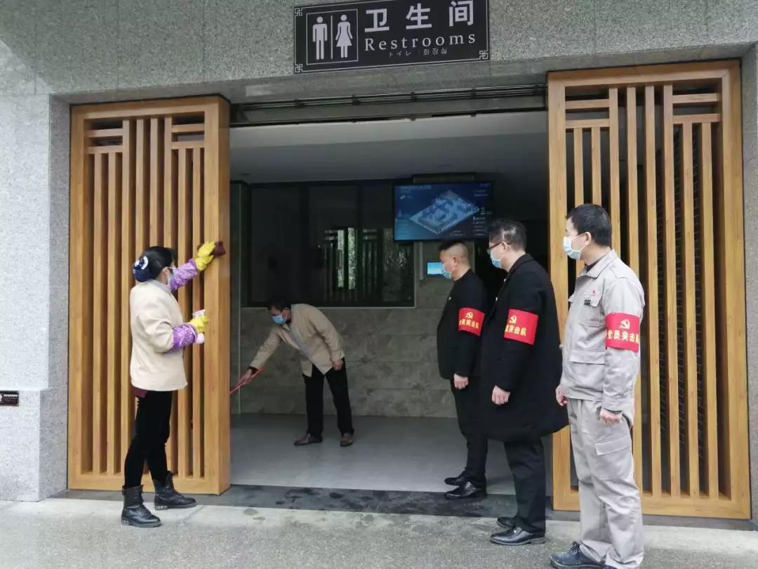 ▲黨員突擊隊成員趙劍波、周成組織相關(guān)人員對景區(qū)的防疫工作及安全工作進(jìn)行檢查。