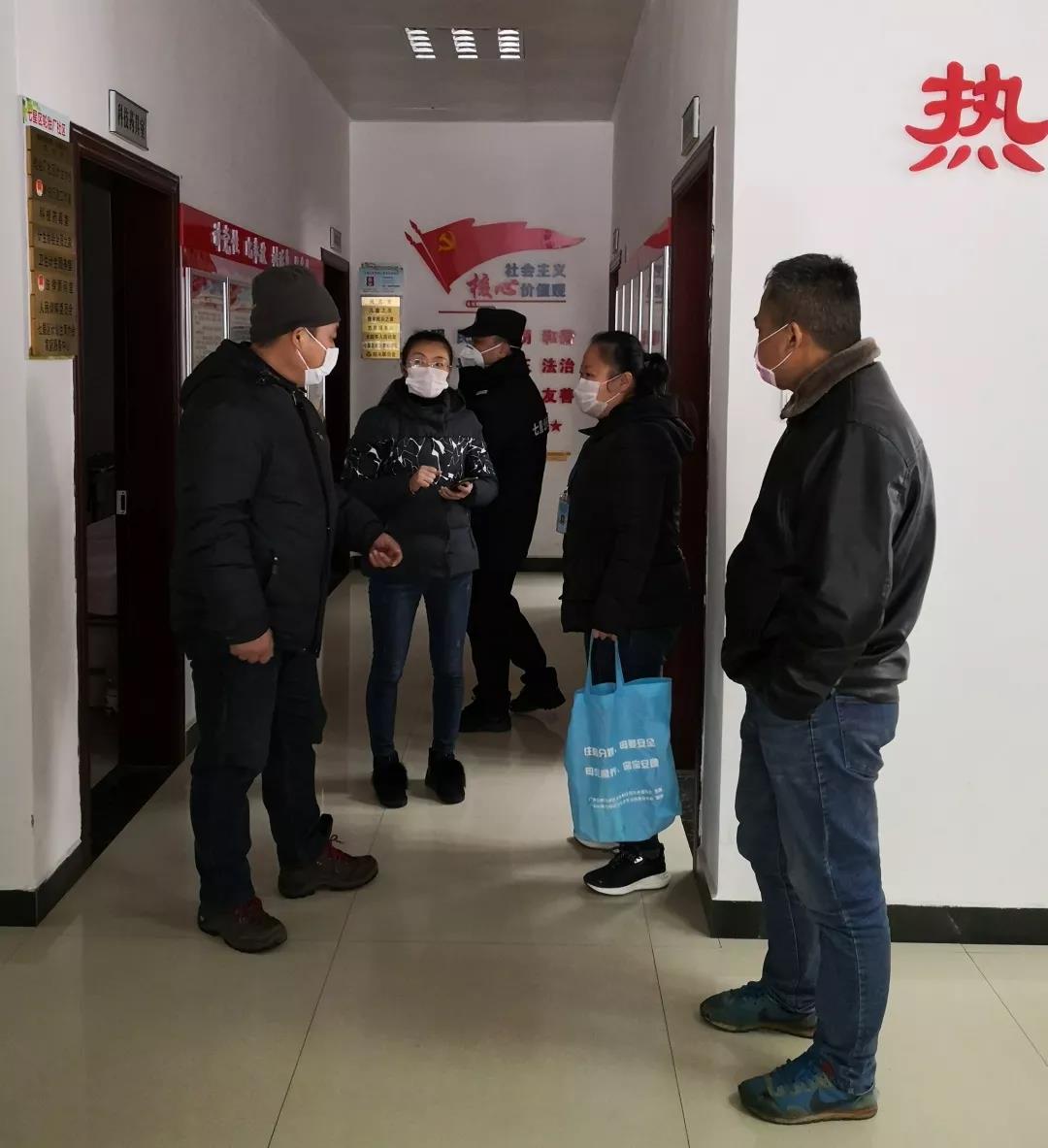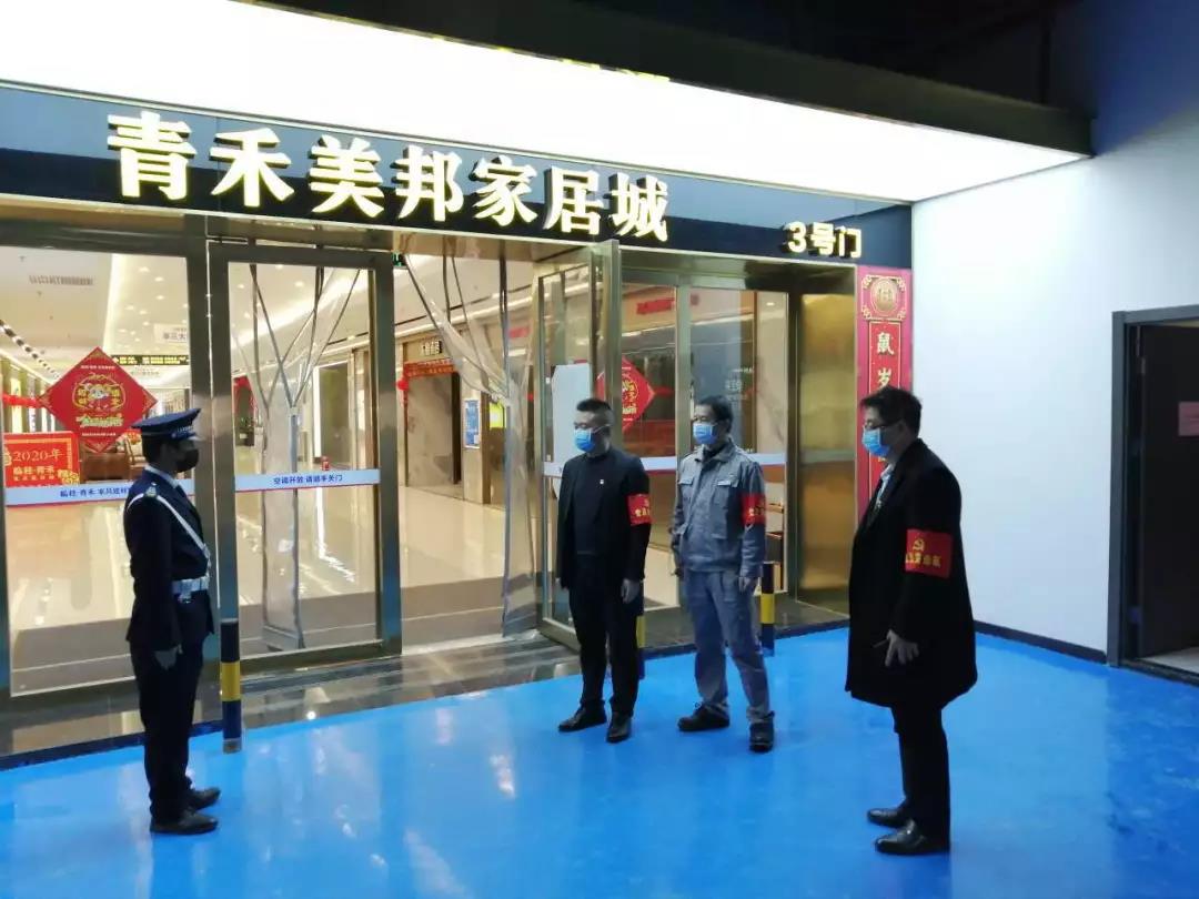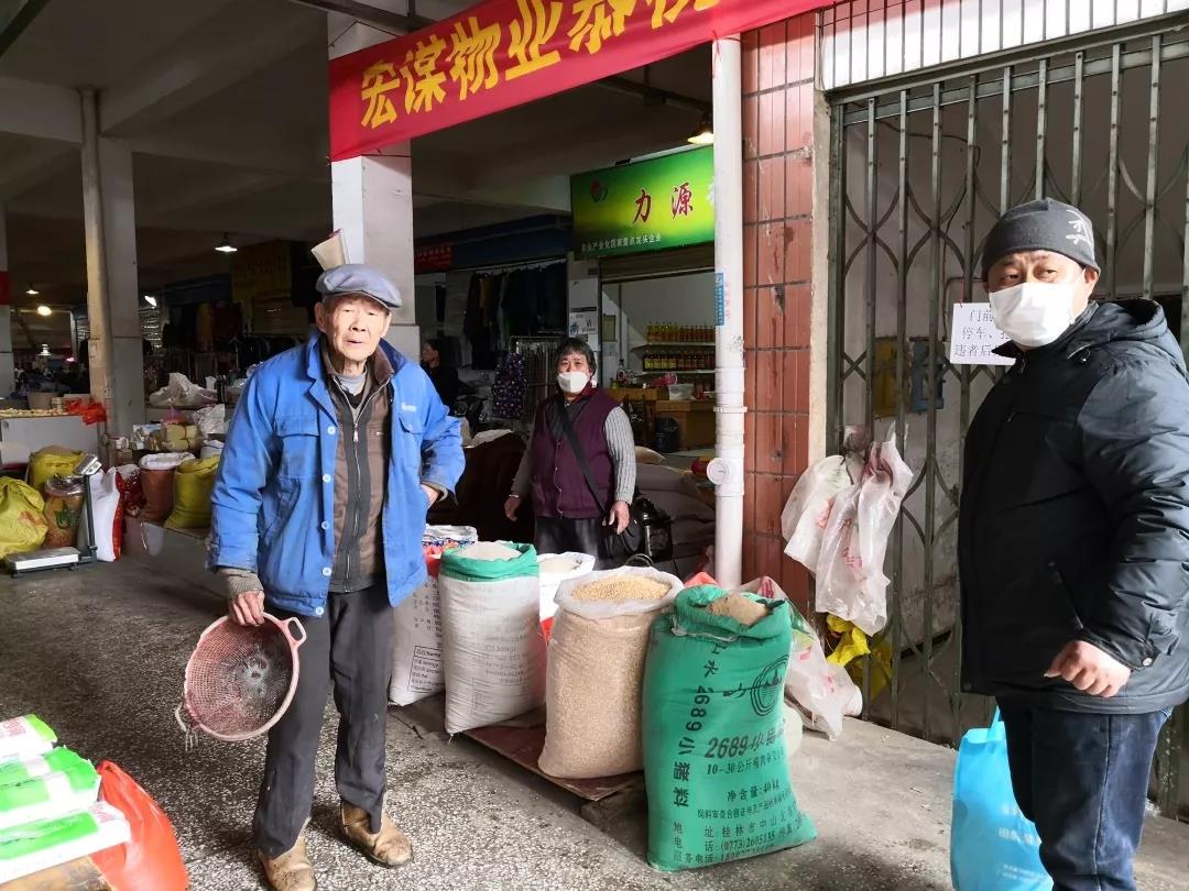 ▲橡膠公司項目工作人員與市場管理人員對市場及各門面進(jìn)行防疫工作排查,并提醒市民戴口罩出行。