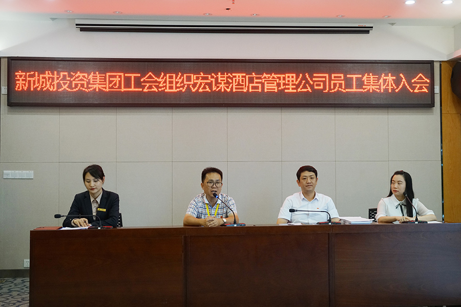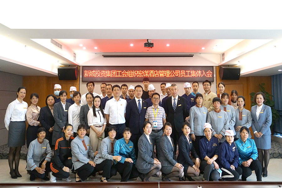 6月23日,新城投資集團(tuán)工會舉辦宏謀酒店管理公司108名員工集體加入集團(tuán)工會儀式。