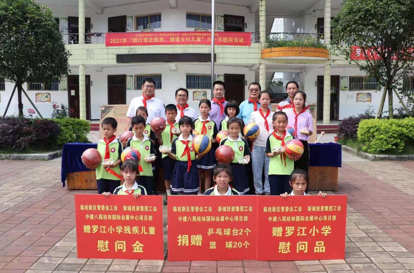 為認(rèn)真貫徹落實(shí)黨史學(xué)習(xí)教育我為群眾辦實(shí)事要求,臨桂新區(qū)管委會工會、新城投資集團(tuán)工會在臨桂區(qū)五通鎮(zhèn)羅江希望小學(xué)開展“踐行黨史教育,情暖鄉(xiāng)村兒童”六一節(jié)前夕慰問活動,并給孩子們帶來乒乓球臺、籃球、書包、文具、食品等物品,給小朋友們送上節(jié)日祝福。