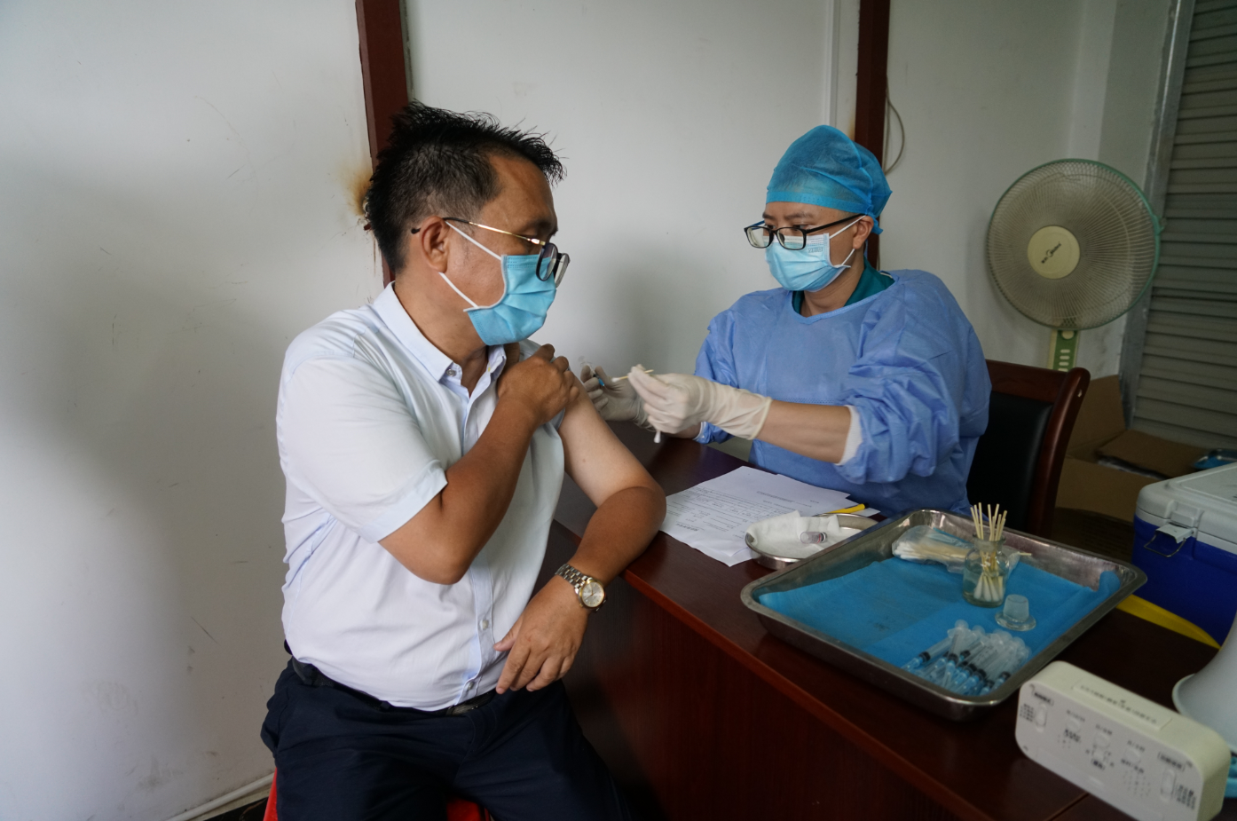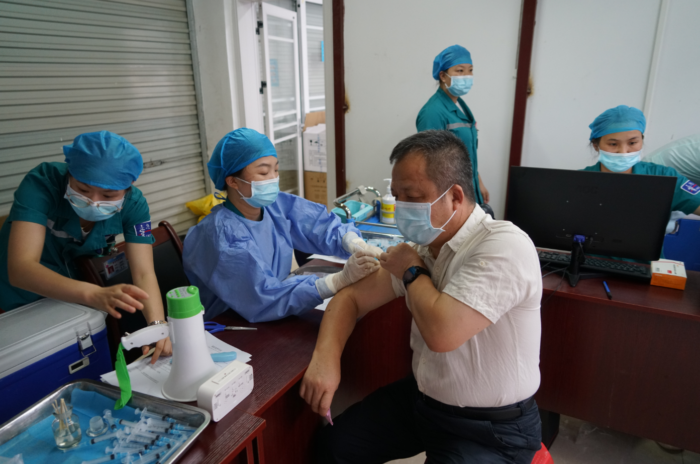 第二針接種流程與第一針相同,現(xiàn)場分為登記區(qū)、錄入?yún)^(qū)、接種區(qū)、留觀區(qū)和緊急處置區(qū)。集團(tuán)黨總支書記周道林,副總經(jīng)理吳濤,工會主席譚力源等到現(xiàn)場了解接種現(xiàn)場安排情況并帶頭接種新冠疫苗第二針。