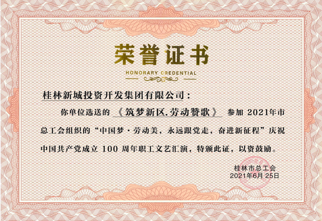 2021年6月25日,由桂林市總工會(huì)主辦的 “中國夢勞動(dòng)美——永遠(yuǎn)跟黨走,奮進(jìn)新征程”慶祝中國共產(chǎn)黨成立100周年全市職工文藝匯演在桂林春天劇院隆重舉行。市委副書記趙仲華,市人大副主任、市總工會(huì)主席徐鋒,副市長龍杏華,市政協(xié)副主席蔣昌桂,市總工會(huì)黨組書記、常務(wù)副主席、機(jī)關(guān)黨委書記寧志出席活動(dòng)。新城投資集團(tuán)黨總支書記、董事長、總經(jīng)理周道林作為受邀嘉賓參加活動(dòng)。