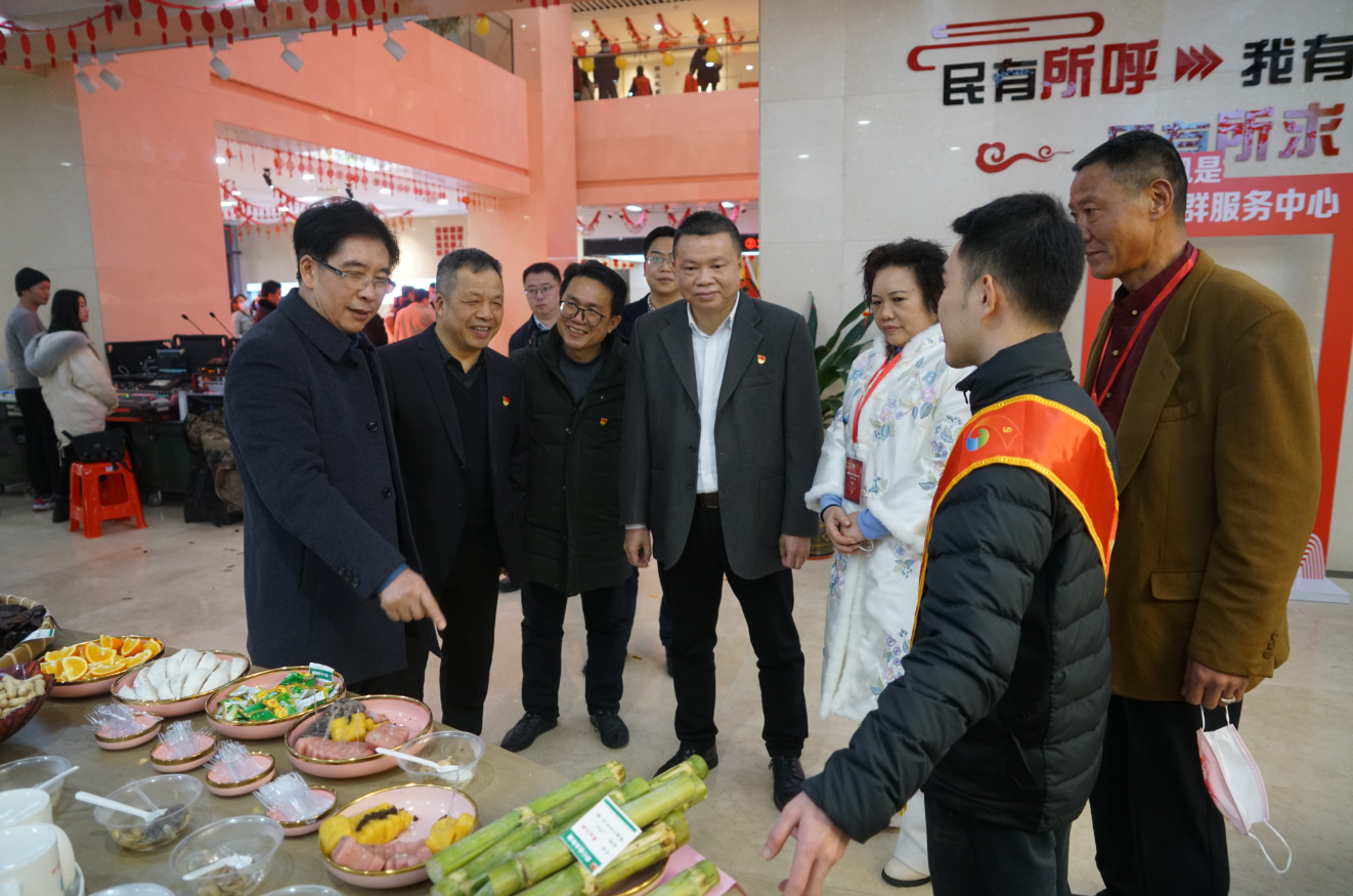 活動現(xiàn)場組織開展了“黨群連心 共迎新春”文藝表演,春聯(lián)剪紙、趣味游園、愛心送年貨、助力鄉(xiāng)村振興等主題活動。
