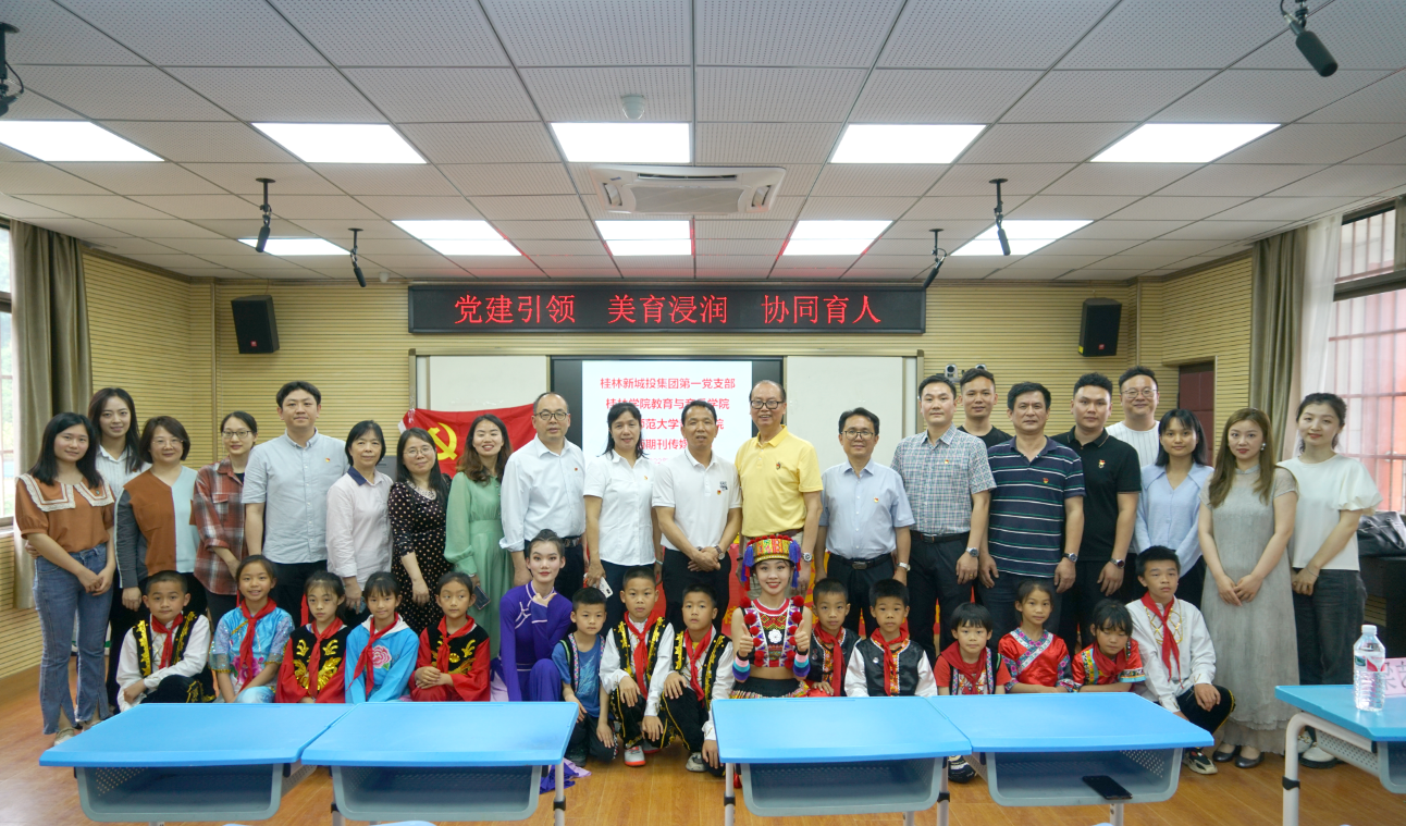桂林市雁山區(qū)教育局業(yè)務(wù)部主任明耀勤,新城投集團(tuán)黨總支委員、工會(huì)主席譚力源,第一支部書記薛春秀,桂林學(xué)院教育與音樂(lè)學(xué)院院長(zhǎng)彭超,黨總支書記周杰,草坪回族希望小學(xué)校長(zhǎng)唐桂輝,新城投集團(tuán)第一支部委員,桂林學(xué)院教育與音樂(lè)學(xué)院老師等一行參加活動(dòng)。