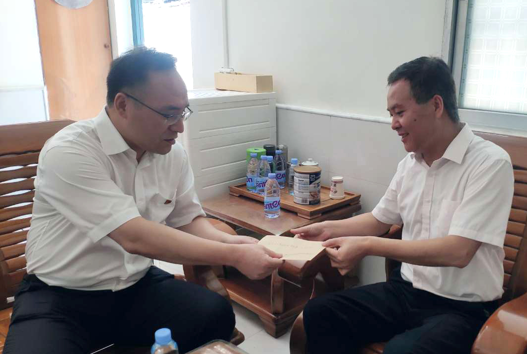 在困難黨員、“三等功臣之家”廖文德家中,黃峻與廖文德拉起家常,詳細詢問生活起居、身體狀況、醫(yī)療保障和子女的工作情況。廖文德是新城投集團下屬子公司宏謀物業(yè)公司橡膠廠項目經(jīng)理,2021年確診肺癌,每月定期到醫(yī)院檢查開藥,開銷很大,加上近期的暴雨導(dǎo)致家中內(nèi)澇,家電等物品損壞嚴重,兒子兒媳都是軍人,常年駐守外地。得知集團黨總支副書記前來慰問,廖文德眼中閃爍著眼淚。黃峻鼓勵廖文德好好養(yǎng)病、好好工作,保持樂觀的生活態(tài)度,有困難找黨組織、找工會。
