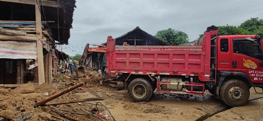 當天下午,譚力源會同臨時聯(lián)合黨支部副書記王偉財帶領成員單位中建八局廣西公司桂林項目部技術人員到達羅江村委受災的4個自然村,開展實地察看,初步形成了損毀、堵塞道路的清理方案。為更好的統(tǒng)籌推進羅江村救災工作,五通鎮(zhèn)黨委在羅江村委辦公地召集相關單位碰頭,并根據(jù)現(xiàn)場情況優(yōu)化調(diào)整推進計劃。
