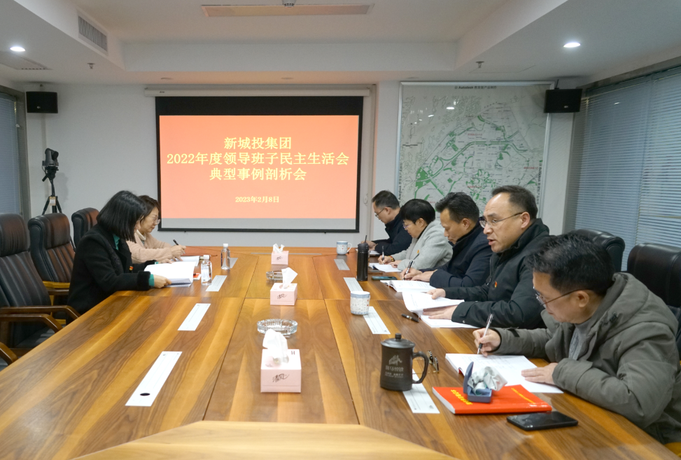 2023年2月8日,新城投集團召開2022年度領導班子民主生活會典型事例剖析會。集團黨總支副書記、總經理黃峻主持會議并講話,集團班子成員參加會議,黨總支委員列席會議。