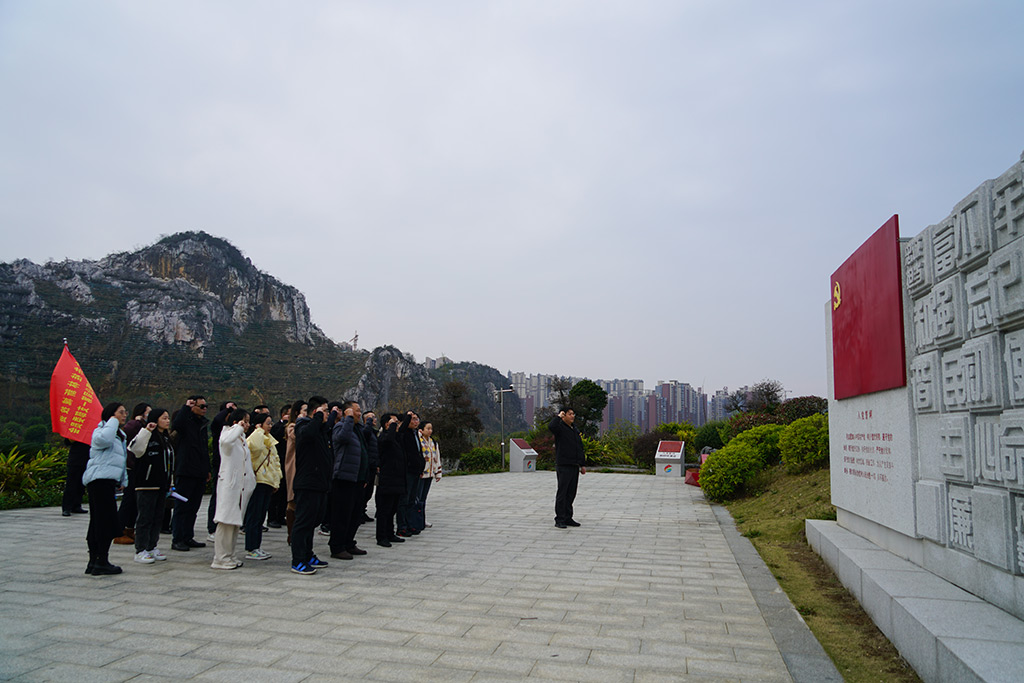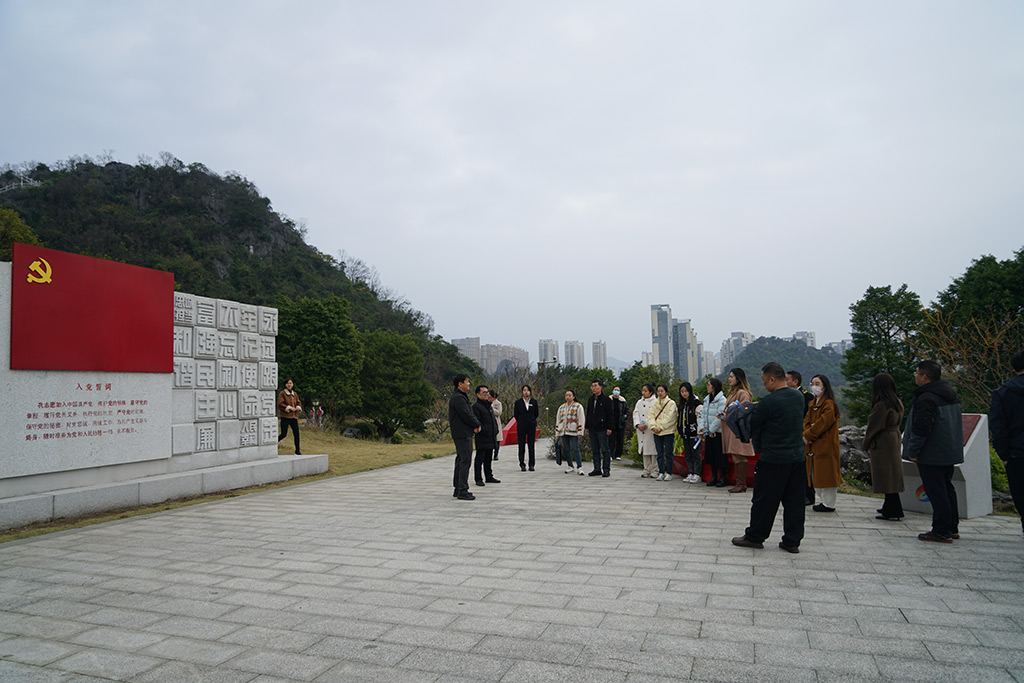 隨后在講解員的帶領下參觀黨建文化主題公園,在獅山山頂,看著不同時期的入黨誓詞,大家一起回顧了革命先輩們艱苦奮斗的歷史,并在黨旗下重溫了入黨誓詞,踏尋先輩足跡,銘記責任在肩,牢記初心使命,堅定理想信念。