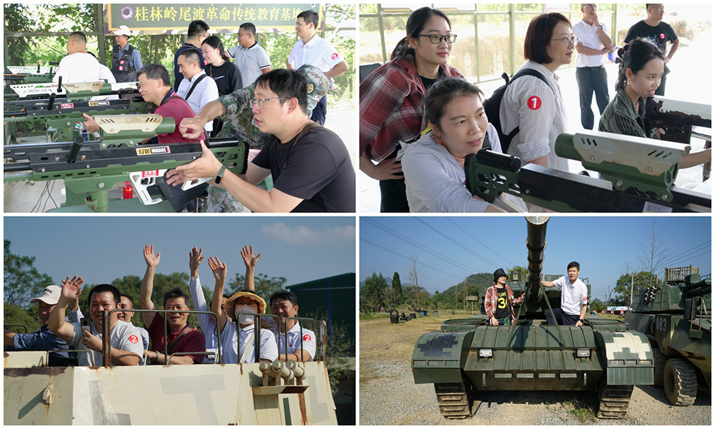 下午,全體成員前往桂林嶺尾渡革命傳統(tǒng)教育基地進(jìn)行實(shí)地學(xué)習(xí)。大家通過參觀桂北游擊隊(duì)文史館,聆聽革命故事,共同回顧了那段波瀾壯闊的革命歲月,深刻領(lǐng)悟到革命先輩們?yōu)槊褡濯?dú)立和人民解放事業(yè)所付出的巨大犧牲。參觀結(jié)束后,大家在基地體驗(yàn)了射擊、坦克駕乘項(xiàng)目,通過寓教于樂的方式,體驗(yàn)桂北游擊抗日精神和吃苦耐勞的革命精神,增強(qiáng)愛國主義情懷和意識(shí)。