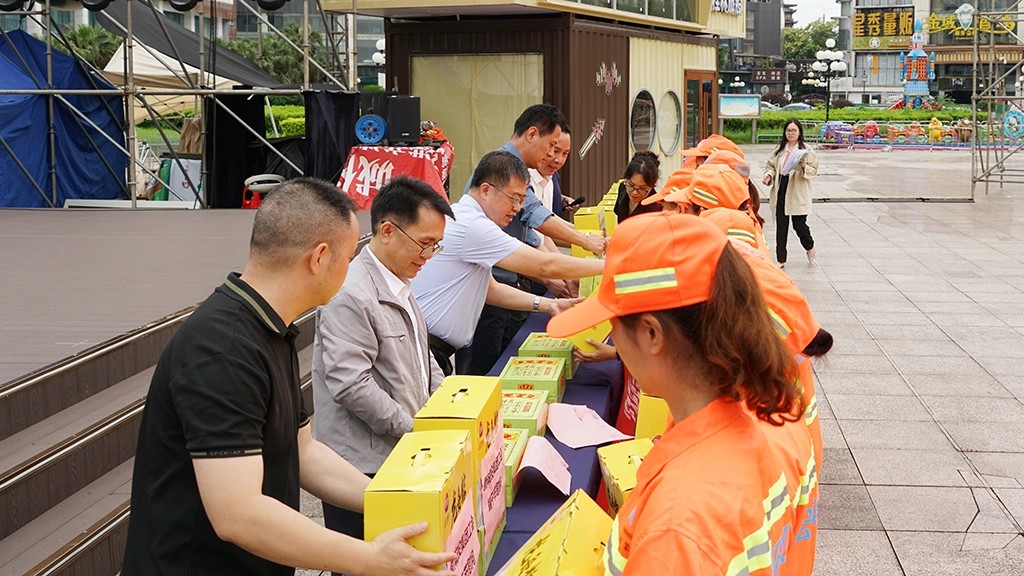 為深入踐行習(xí)近平總書記“以人民為中心”“勞動(dòng)最光榮”的指導(dǎo)思想,切實(shí)把組織關(guān)懷送到基層勞動(dòng)者心坎上,進(jìn)一步提升環(huán)衛(wèi)職工隊(duì)伍的職業(yè)認(rèn)同感和幸福感,2025年5月29日端午節(jié)前夕,新城投集團(tuán)聯(lián)合宏謀城運(yùn)公司在秀峰區(qū)中心廣場舉辦“粽香傳暖意,致敬城市美容師”端午節(jié)慰問活動(dòng)。此次活動(dòng)得到市城管委,秀峰區(qū)政府、城管局、環(huán)衛(wèi)站的大力支持與指導(dǎo)。市城管委黨組成員、副主任蔣毅出席活動(dòng)。受新城投集團(tuán)黨委書記、董事長朱毅委托,黨委副書記、紀(jì)委書記、工會(huì)主席譚力源代表集團(tuán)黨委、領(lǐng)導(dǎo)班子及全體職工,向奮戰(zhàn)在環(huán)衛(wèi)一線的干部職工致以節(jié)日問候。
