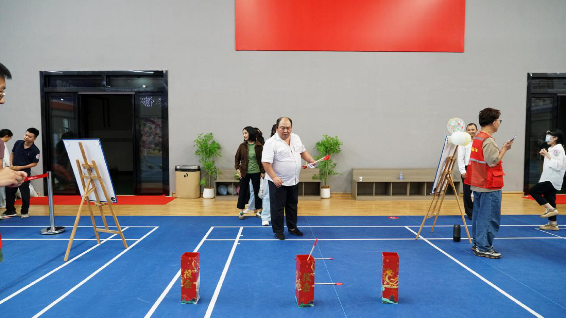 “進擊吧西瓜”環(huán)節(jié)中,大家化身“西瓜勇士”,奮力投擲,隨著手中“西瓜球”破空而出,擊倒地面上瓶子,場上歡呼聲彌漫著收獲勝利的喜悅。