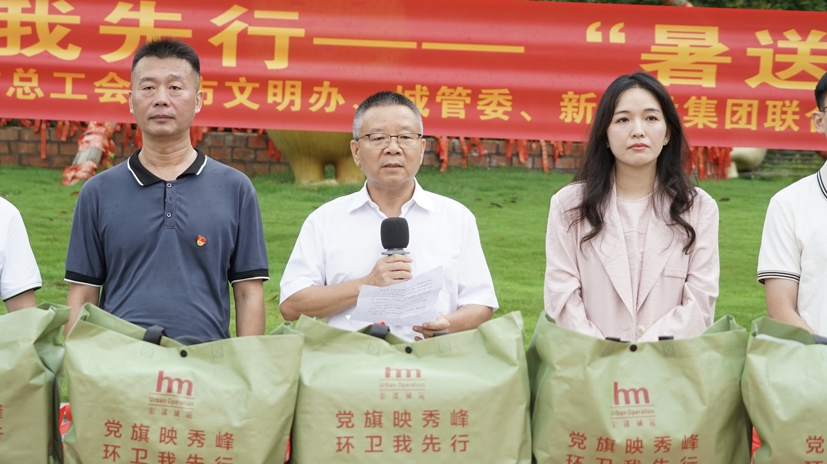 蘇紹坤在致辭中向奮戰(zhàn)在高溫一線的環(huán)衛(wèi)工人致以誠摯問候和崇高敬意。他指出,環(huán)衛(wèi)工人是文明守護(hù)者,城市建設(shè)每一點(diǎn)成績都離不開他們的辛勤付出。秀峰區(qū)始終把環(huán)衛(wèi)事業(yè)放在城市治理的突出位置,新城投集團(tuán)下屬宏謀城運(yùn)公司承接項目后,以專業(yè)能力推動工作提質(zhì)增效。今后,區(qū)政府將持續(xù)優(yōu)化防護(hù)措施、改善作業(yè)裝備,并帶動全社會尊重環(huán)衛(wèi)勞動,使“垃圾不落地”成為市民自覺行動,共同讓秀峰更加潔凈。
