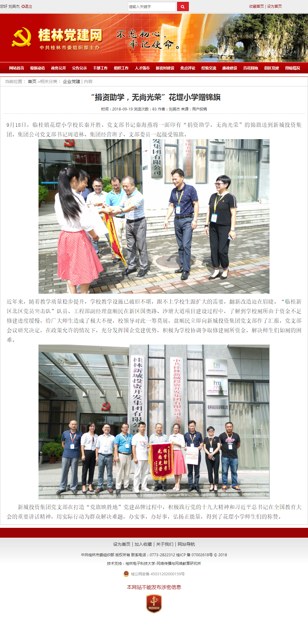 桂林黨建網(wǎng) “捐資助學,無尚光榮”花堽小學贈錦旗