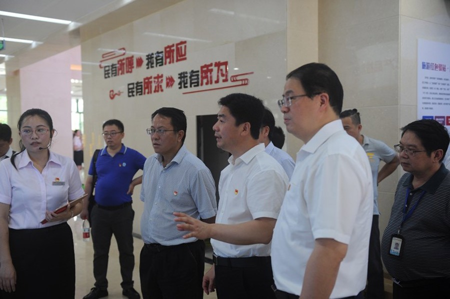 2019年7月1日,在中國(guó)共產(chǎn)黨建黨98周年到來(lái)之際,桂林市委副書(shū)記白松濤一行專程到桂林市黨群服務(wù)中心調(diào)研指導(dǎo)試運(yùn)行情況。市委常委、組織部部長(zhǎng)、市黨群服務(wù)中心建設(shè)工作領(lǐng)導(dǎo)小組組長(zhǎng)彭東光陪同調(diào)研。