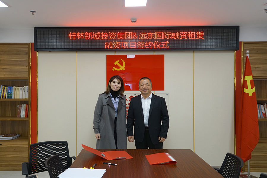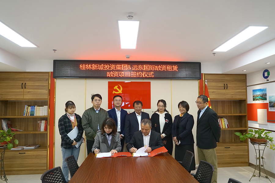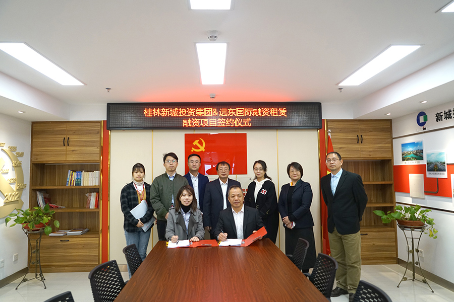 2020年11月27日上午,桂林新城投資開發(fā)集團(tuán)有限公司(以下簡稱“新城投資集團(tuán)”)與遠(yuǎn)東國際融資租賃有限公司(以下簡稱“遠(yuǎn)東租賃”)在集團(tuán)辦公大樓會議室舉行戰(zhàn)略合作暨融資項目簽約儀式。新城投資集團(tuán)黨總支書記、董事長、總經(jīng)理周道林,遠(yuǎn)東租賃城市公用部廣西區(qū)域總監(jiān)張昆昆分別代表雙方在融資合同上簽字。