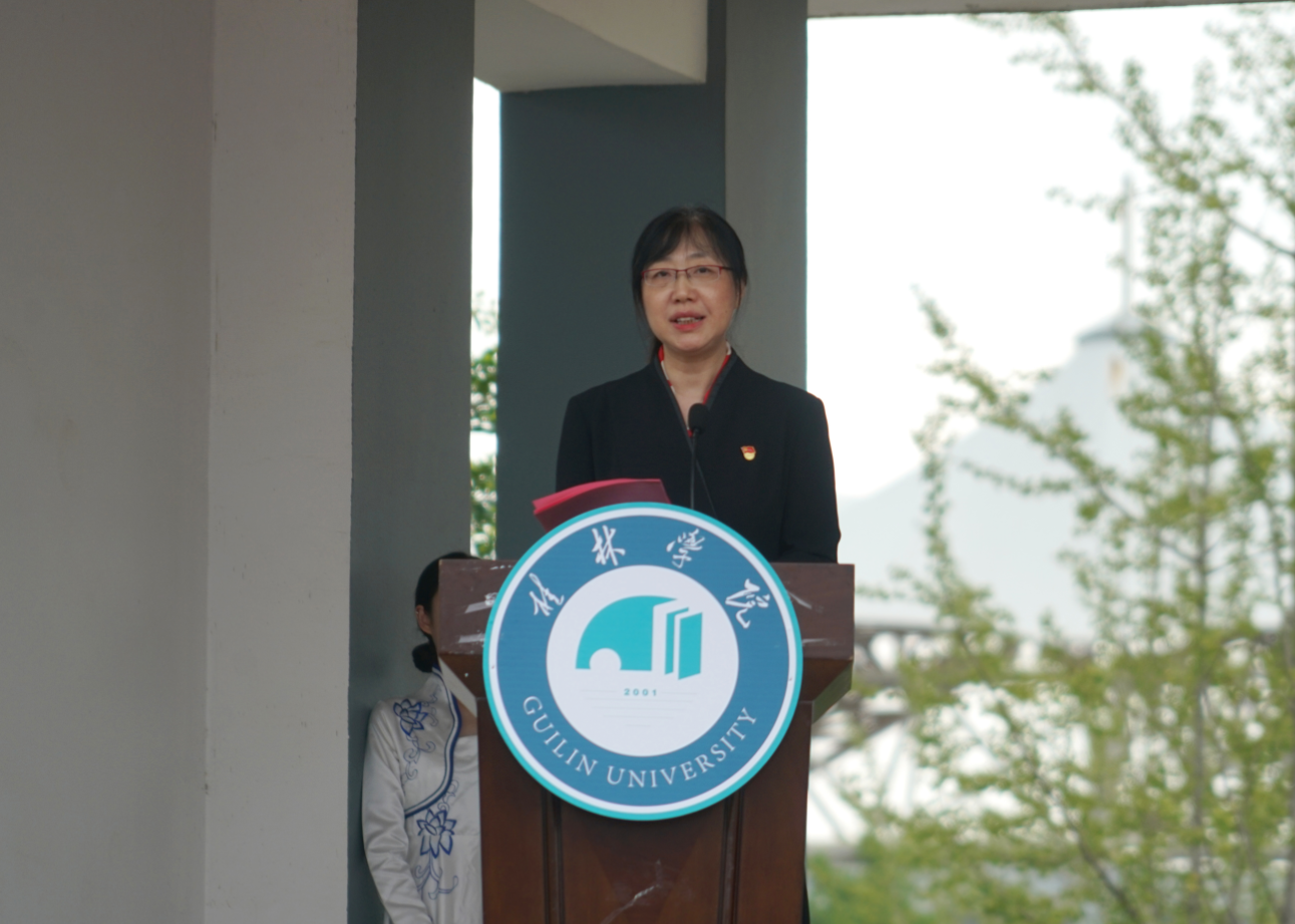 周道林表示,作為桂林學(xué)院的首屆新生,大家是學(xué)校新發(fā)展的見證者和參與者。為了給大家創(chuàng)造更好的學(xué)習(xí)環(huán)境,提供更好的發(fā)展平臺,學(xué)校將認(rèn)真貫徹落實教育部致自治區(qū)人民政府《關(guān)于同意廣西師范大學(xué)漓江學(xué)院轉(zhuǎn)設(shè)為桂林學(xué)院的函》等文件精神,加大辦學(xué)投入,進一步完善辦學(xué)條件,按照“做強新文科、壯大新工科、拓展新農(nóng)科和新醫(yī)科”的基本思路,實施“強基礎(chǔ)補短板、重內(nèi)涵提質(zhì)量、育特色樹品牌”戰(zhàn)略,堅定“規(guī)范高效、特色鮮明、質(zhì)量與就業(yè)雙優(yōu)的國有民辦城市大學(xué)”發(fā)展目標(biāo),全面深化教育教學(xué)改革,不斷調(diào)整優(yōu)化學(xué)科專業(yè)結(jié)構(gòu),完善現(xiàn)代大學(xué)內(nèi)部治理體系,提高適應(yīng)區(qū)域經(jīng)濟社會發(fā)展所需要的應(yīng)用型、技術(shù)技能型人才培養(yǎng)質(zhì)量,加快建成桂林人民滿意的創(chuàng)新大學(xué)、開放大學(xué)、窗口大學(xué)。今年4月,習(xí)近平總書記在桂林考察調(diào)研時,給桂林設(shè)定了打造世界級旅游城市的歷史使命。站在新的歷史起點上,希望大家要始終牢記總書記的囑托,主動將自己的學(xué)習(xí)成長、個人發(fā)展與國家的發(fā)展需求緊密結(jié)合,為國家發(fā)展貢獻自己最大的力量。更多的關(guān)注桂林市的發(fā)展,用自己的所學(xué)所長來為桂林市的建設(shè)添磚加瓦。