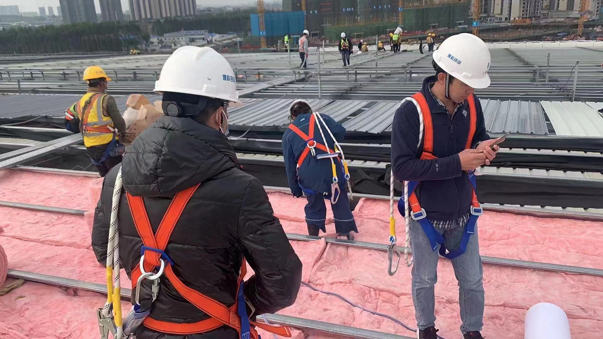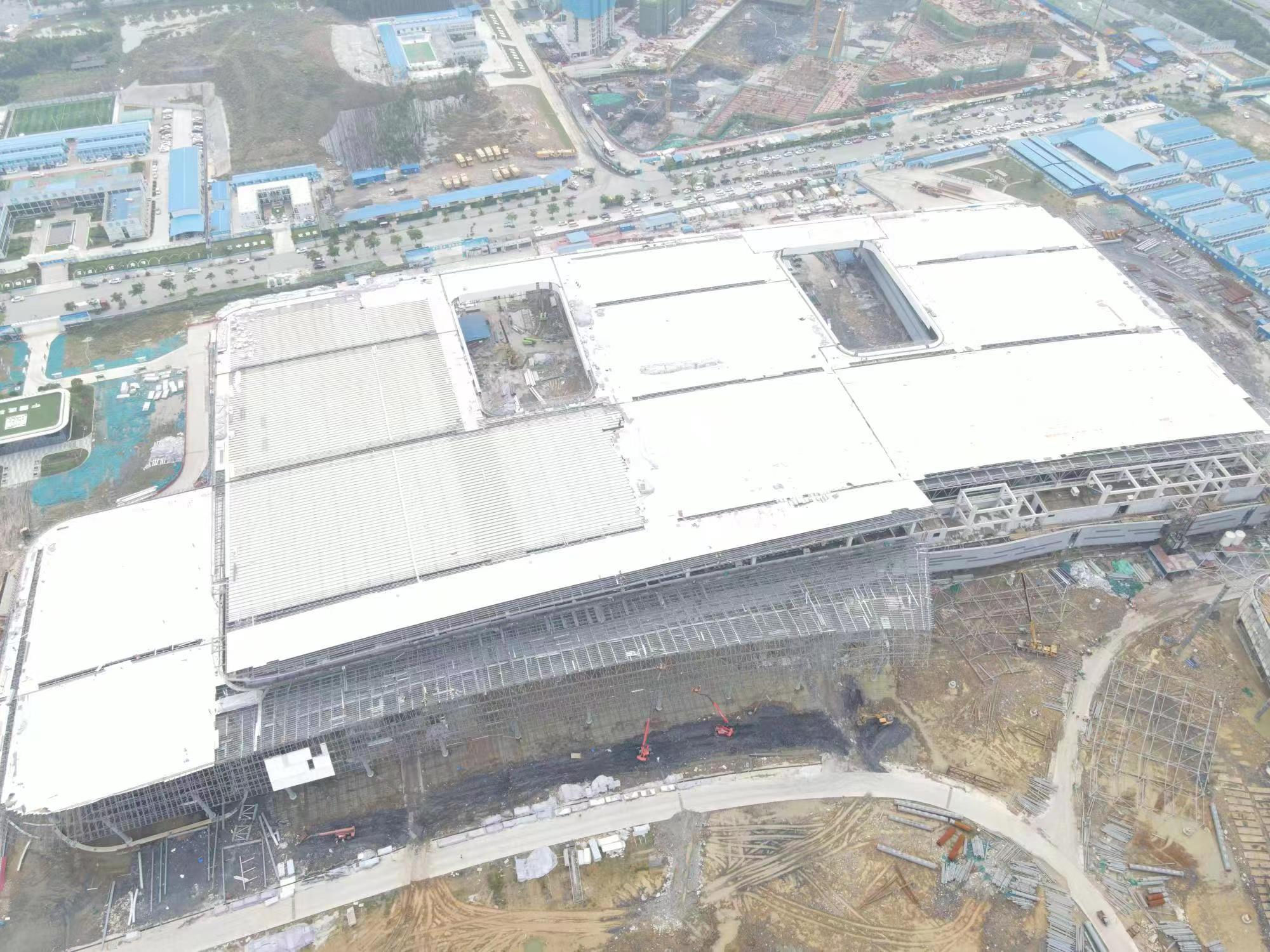新城投集團在桂林新區(qū)“黨旗映勝地”黨建品牌的引領(lǐng)下,成立了項目臨時聯(lián)合黨支部,通過抓實“11321”黨建推項目工作法,實施“全過程一體鏈”黨建新模式,充分發(fā)揮各參建單位所長,以黨建推項目、項目促黨建,積極推進黨建工作與生產(chǎn)經(jīng)營的深度融合,齊心協(xié)力推動會展項目建設(shè)。現(xiàn)在,會展中心項目現(xiàn)場每天施工人數(shù)超1800人,各專業(yè)工作正在有序穿插進行,在保證安全和工程質(zhì)量的前提下進行施工,一季度月均產(chǎn)值過億。項目建設(shè)參建各方堅持安全第一、質(zhì)量至上,全程監(jiān)督每一道施工工序,嚴格把關(guān)每一個施工細節(jié), 各區(qū)域施工作業(yè)高效、有序展開,確保了疫情防控不缺位,項目施工整體不掉速。截至“5.1”前,項目標準展廳二次結(jié)構(gòu)完成80%,幕墻完成80%,金屬屋面避水工作正在展開;多功能廳主體完成100%;會議中心地下室完成90%,鋼柱吊裝完成80%;第一接待中心主樓完成至10樓,附樓地下室完成100%;游客中心地下室完成100%。