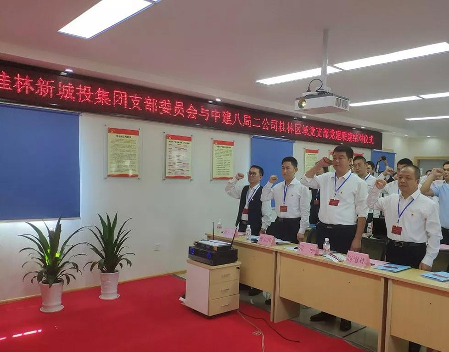 2018年10月30日上午,中共桂林新城投資開發(fā)集團有限公司黨支部與中共中建八局第二建設(shè)有限公司廣西公司桂林區(qū)域黨支部在桂林市臨桂新區(qū)基地項目部舉行黨建聯(lián)建結(jié)對儀式。