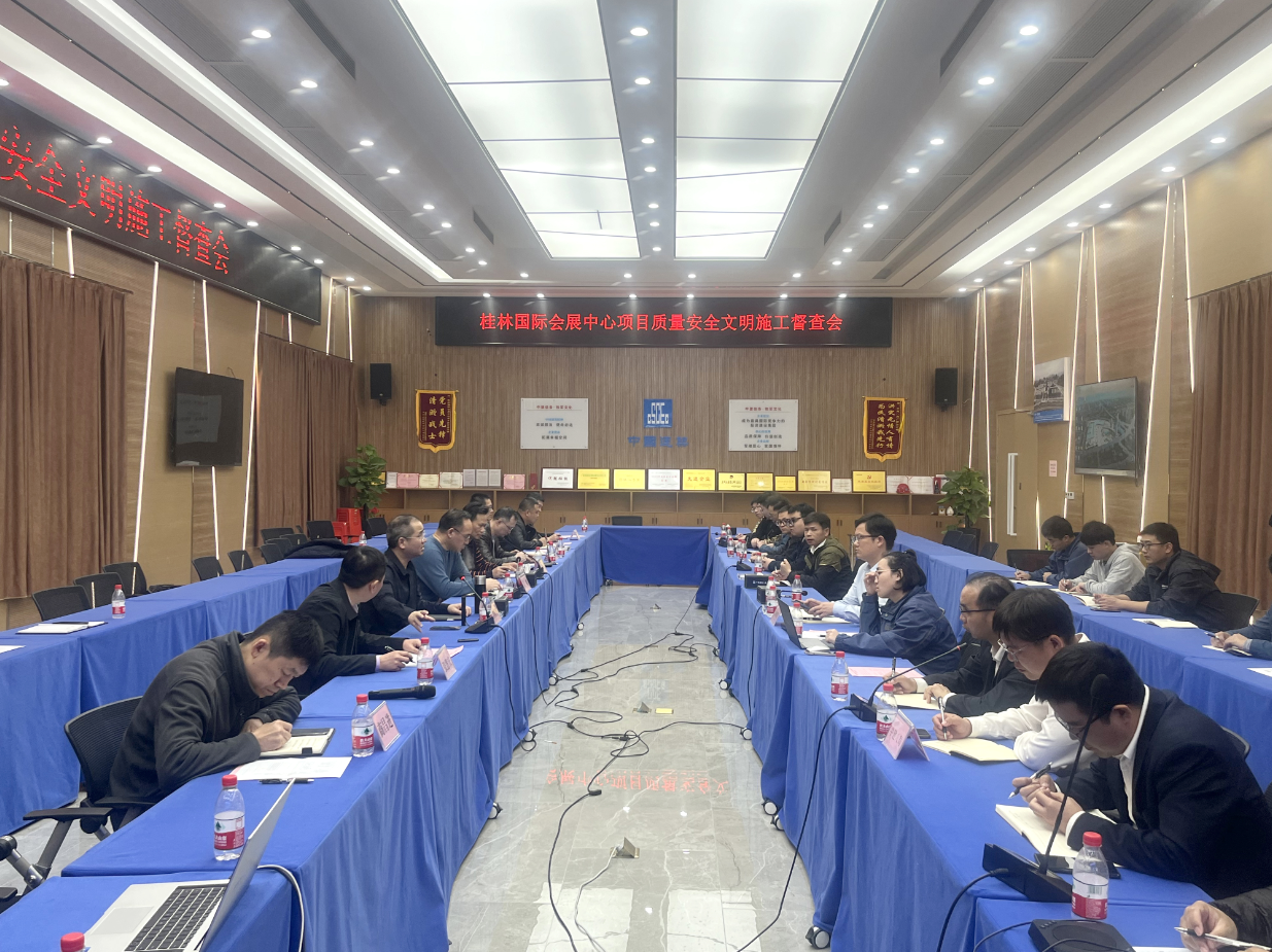 為認真貫徹習近平總書記關于安全生產重要論述,在全國“兩會”期間進一步做好桂林國際會展中心項目安全生產工作,2023年3月9日,桂林國際會展中心指揮部召開質量安全文明施工督查會。臨桂新區(qū)黨工委委員、管委會常務副主任李星明,副主任張慧慶出席會議。會議由新城投集團黨總支副書記、總經理黃峻主持。