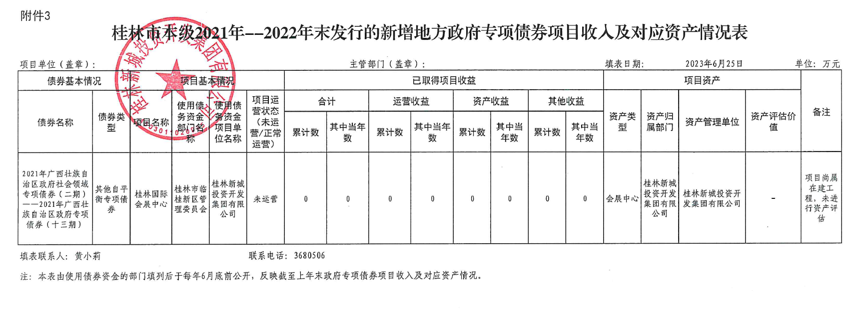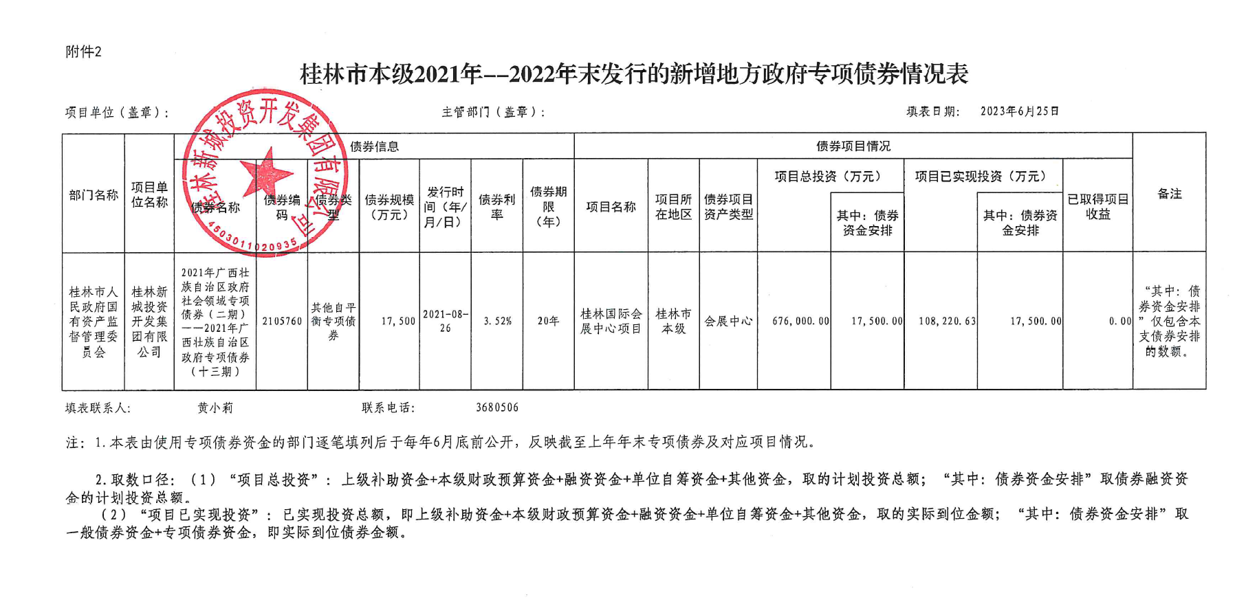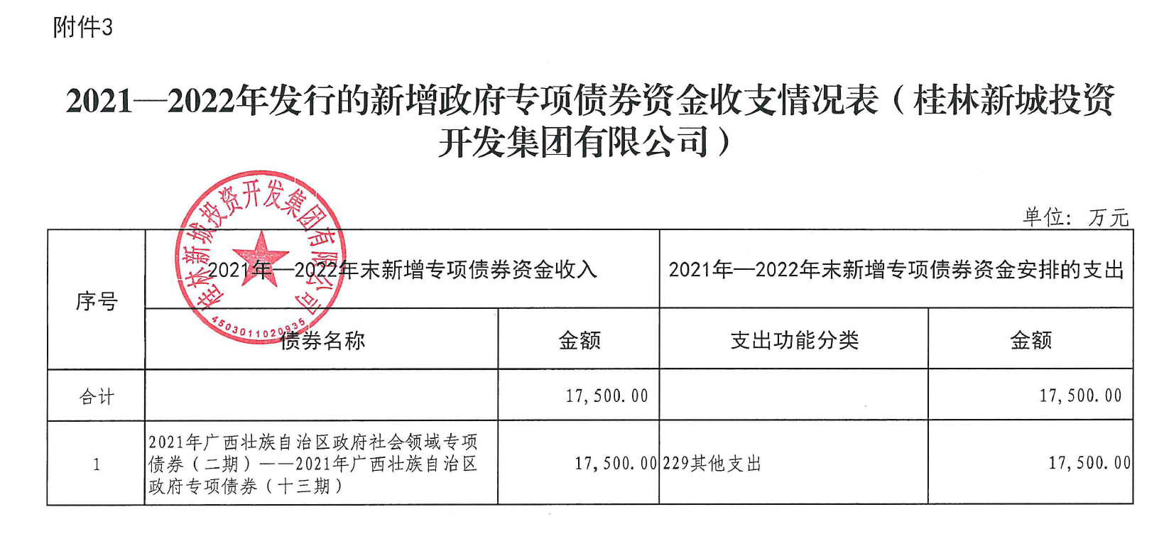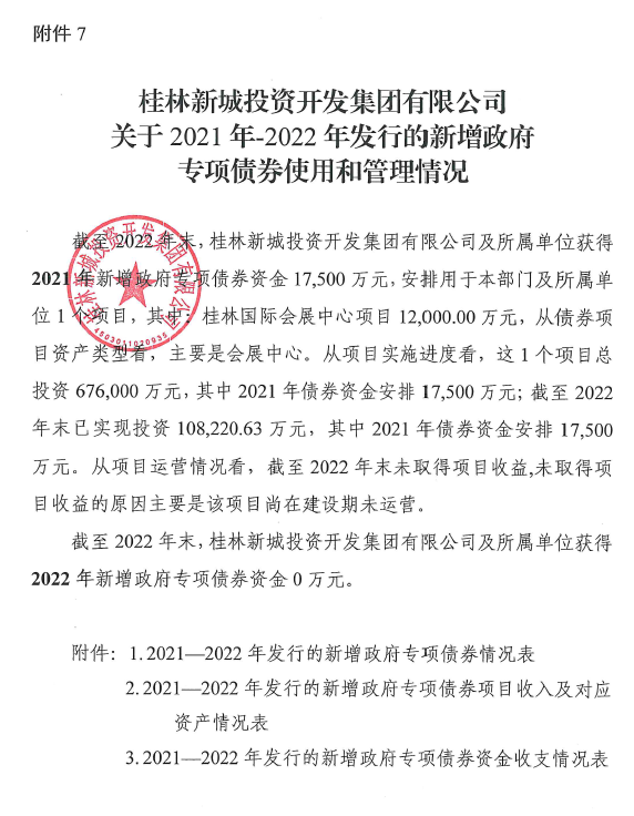 桂林新城投資開發(fā)集團有限公司關(guān)于2021年-2022年發(fā)行的新增政府專項債券使用和管理情況