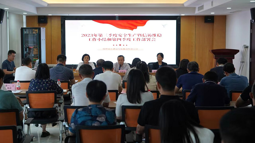 2023年10月26日,城建集團(tuán)黨委副書記、副董事長(zhǎng)、總裁肖笛波主持召開2023年第三季度安全生產(chǎn)暨信訪維穩(wěn)工作小結(jié)和第四季度工作部署會(huì),城建集團(tuán)各部室、下屬子公司主要負(fù)責(zé)人參加會(huì)議。新城投集團(tuán)黨委副書記、副董事長(zhǎng)、總經(jīng)理朱毅對(duì)公司近期安全生產(chǎn)工作情況進(jìn)行匯報(bào)。會(huì)上,肖笛波對(duì)新城投集團(tuán)將黨建嵌入到安全生產(chǎn)管理工作的創(chuàng)新做法,以及對(duì)桂林新國(guó)際會(huì)展中心順利舉辦一系列大型活動(dòng)的安全保障工作予以充分肯定,要求新城投集團(tuán)進(jìn)一步落實(shí)檢查和考核職責(zé),及時(shí)發(fā)現(xiàn)并解決各類安全隱患。
