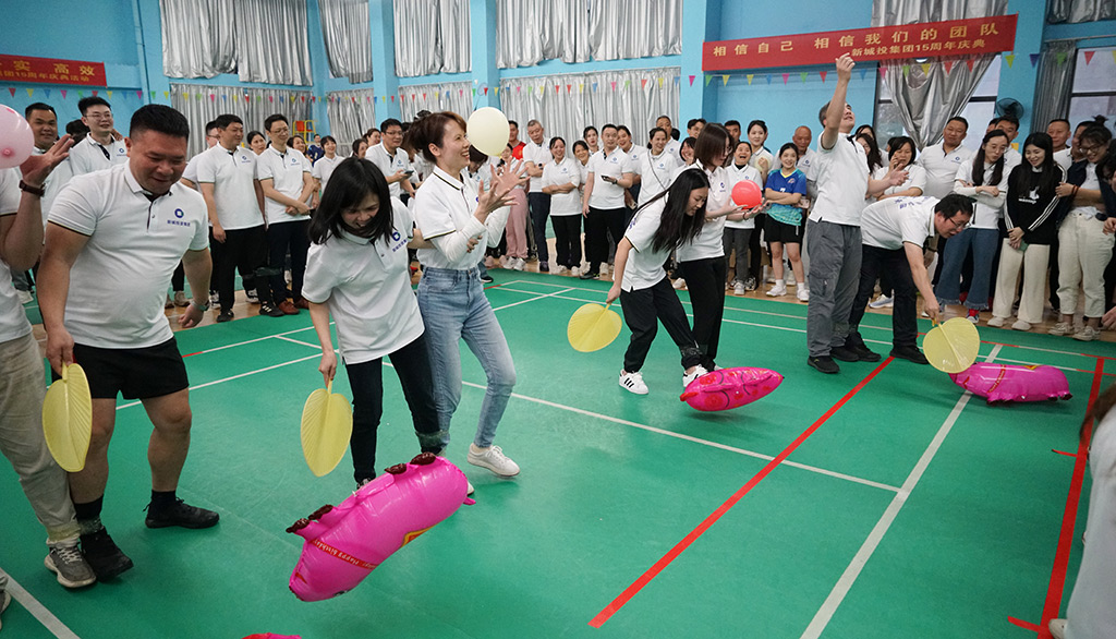 在目睹了兩場賽事的視覺盛宴后,職工們都躍躍欲試,迫不及待地參加集體團建活動。“兩人三足接力趕豬”游戲考驗隊員們的協(xié)調性、敏捷性和團隊合作意識,集團領導班子成員何萌與同伴一道齊心協(xié)力,順利完成比賽;“聽口令做動作”游戲考驗的是專注力、反應力和身體協(xié)調性,集團領導班子成員劉敏在這個環(huán)節(jié)展現(xiàn)了一定的實力;“瞎子摸魚”游戲側重考驗職工的觀察力、反應力和團隊合作能力,對體能也有一定的要求,跑得慢的“魚”,將迎強壯“瞎子”的當頭一棒,與生俱來的逃生欲讓游戲變得緊張刺激而又滑稽。輕松愉悅的活動氛圍讓大家沉浸其中,現(xiàn)場充滿了歡聲笑語,洋溢著喜慶的氣氛。